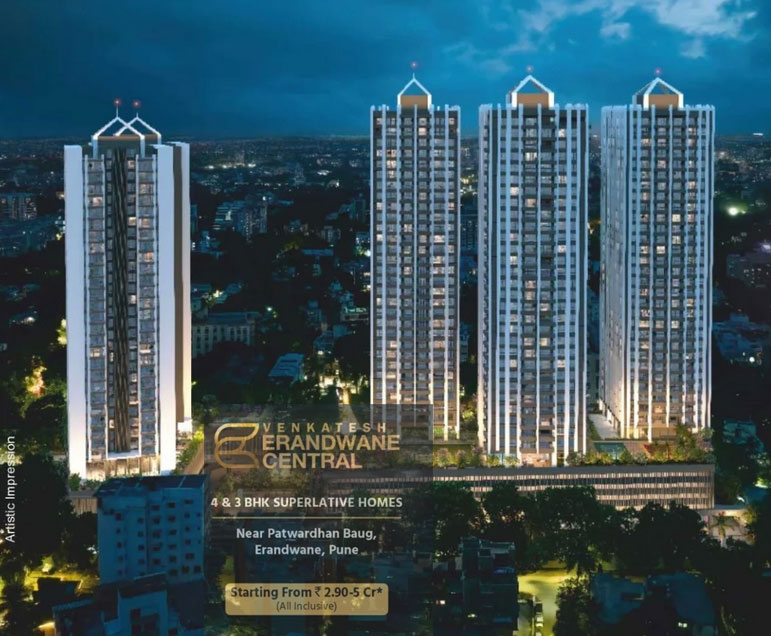 The best place to be is in someone’s heart. So, why not live in the heart of your city? Venkatesh Buildcon proudly presents a masterpiece project on the grounds of CDSS Compound and in the heart of Pune–Venkatesh Erandwane Central. This project promises superlative homes with panoramic city views, superb road connectivity and a plethora of 25+ exciting amenities. Enjoy a luxurious lifestyle beyond imagination in the 4.5 acres of excellence and magnificence. An exclusive mega project at a landmark location, it is about to transform the face of Pune-4.